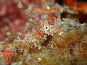 ロープ沿いに隠れん坊していたのはカワハギの赤ちゃん!